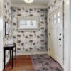 Die Tapete ist in einem gedeckten Beige gedruckt.